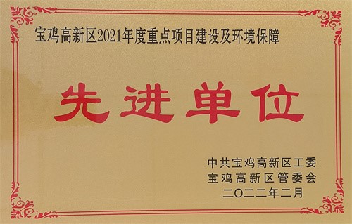 陜西紫光辰濟(jì)藥業(yè)有限公司榮獲“寶雞高新區(qū)2021年度重點項目建設(shè)及環(huán)境保障先進(jìn)單位”